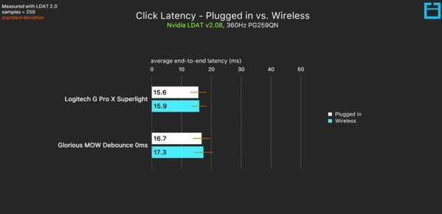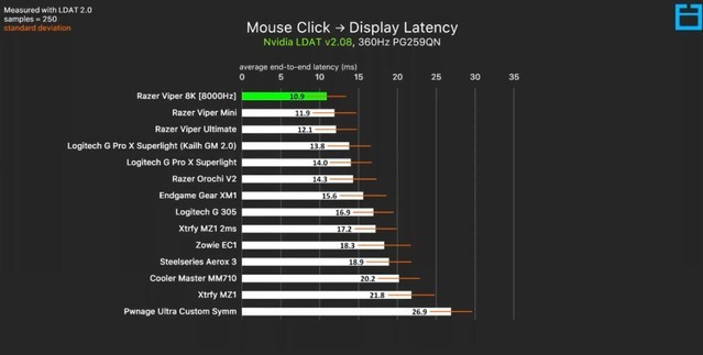 如果对两者的区别有疑问,测试中还可以看到,同一个鼠标的有线延迟和2.4G的延迟差只有0.3ms,所以对于大多数用户来说,真的没有必要纠结于无线鼠标的延迟。