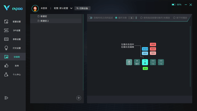 雷柏 VT350S配备了驱动。在官网上,我们也可以看到,雷柏今年的新鼠标几乎被整合到同一个驱动软件中,而不是像以前那样单独为每个鼠标准备驱动。同品牌多设备驱动软件也是目前的大趋势,雷柏在这方面有所改变,也是一个进步。该驱动器可以调节鼠标性能参数、按键功能和宏命令输入。驱动的一级界面非常简单,所以我们可以很容易地找到我们需要的功能,学习成本低。