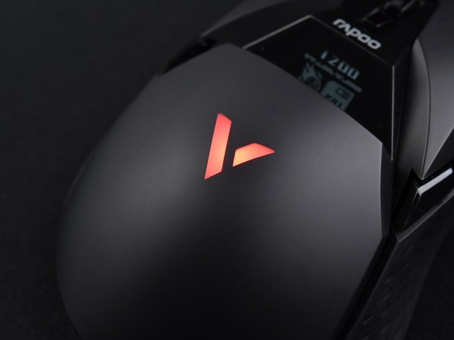 在鼠标正中央设置了VT950S显示屏,可显示静态文字、鼠标参数和BMP格式的单色图片,其尺寸为0.66英寸,最大分辨率为64x48像素的图片可显示。在雷柏 VT系列中,鼠标预设的图案是LOGO,并且可以直观地显示鼠标当前的DPI档位。