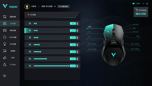 原相PMW3370是雷柏 VT950S电竞游戏鼠标搭载的引擎,它支持50-19000DPI,并且支持50DPI定制7档DPI可调,笔者测试了该鼠标在预设档位下的性能表现