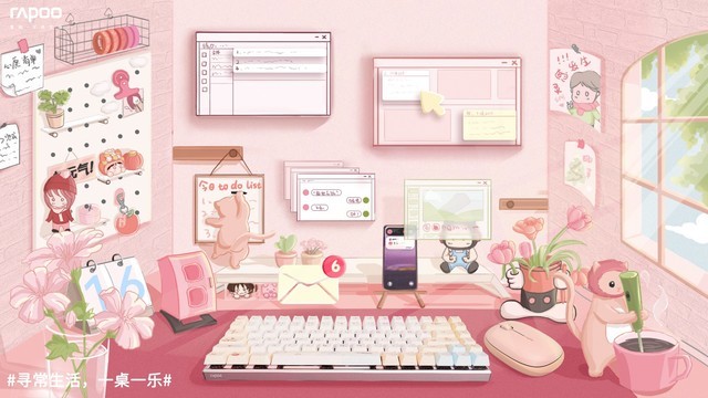 桌子雷柏 MT510PRO喵萌日记多模无线机械键盘+M650多模无线鼠标。