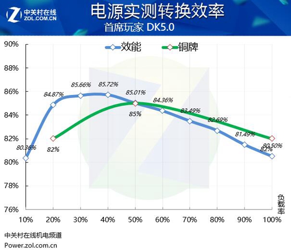 宣称80 PLUS铜牌的首席玩家DK 5.0电源实测不达标