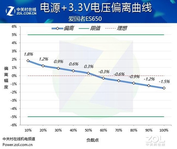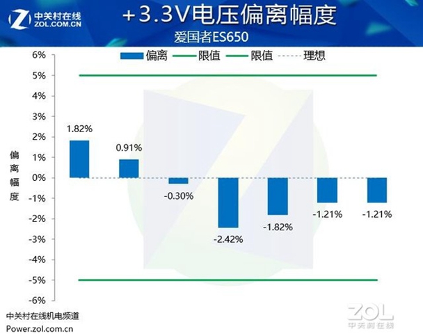 爱国者 ES650电源+3.3V交叉负载电压偏离