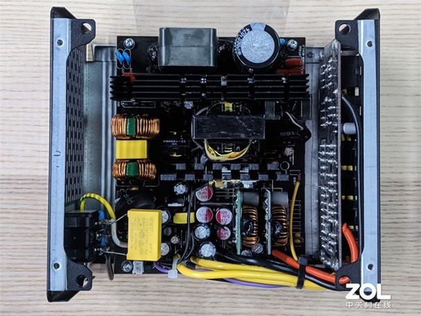 在测试了电源的输出表现之后,我们再拆开电源来看看产品内部的做工和用料表现。爱国者 ES650电源采用了主动式PFC+LLC谐振+DC to DC的设计,也是其金牌效能和稳定输出的保障。