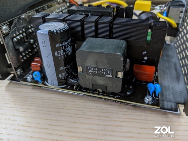 电源的二级EMI电路齐全,主电容采用了日系390微法电容,搭配输出端的台系固态加点解电容有效降低了输出纹波,让电源在不同环境下也能保证输出的纯净。