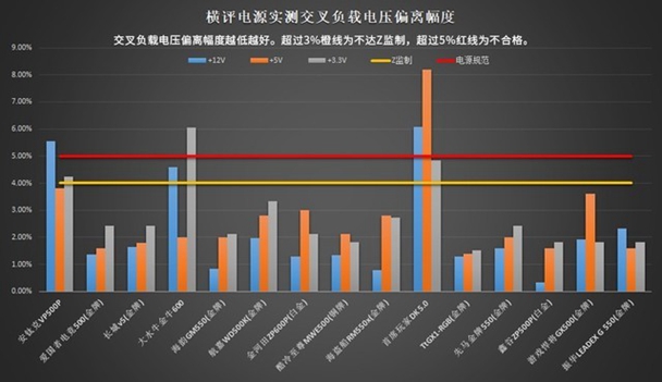 交叉负载电压偏离的合格线同样是5%的偏离幅度,Z监制的要求则是控制在4%以内。