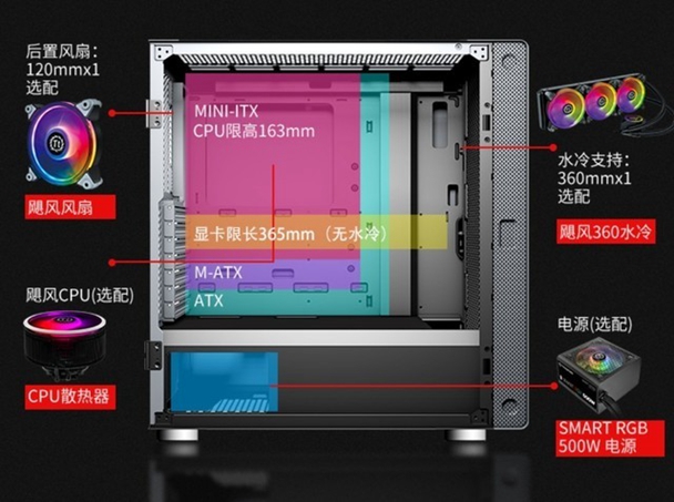 为的是放到身前使用,各式各样按钮和接口在顶端是很关键的,价格低廉用料好当然也是很关键的不利因素,综合性这些需求,选择TT 起航者A1 Pro,钛灰白色,磁吸式侧透地板,收纳很便利,拓展能力出众,240 360散热器都装著,显卡能支持到最久365公厘,拓展能力强悍。