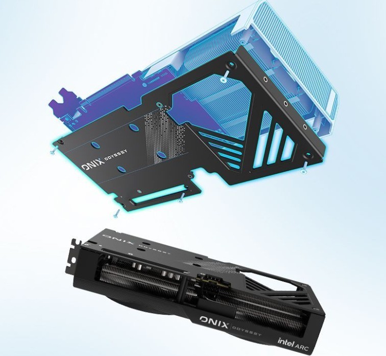 傲世 B580的设计简洁大方,采用优雅的哑光黑设计,并配备了合金背板,旨在提升质感的同时,为显卡提供保护并延长显卡的使用寿命。