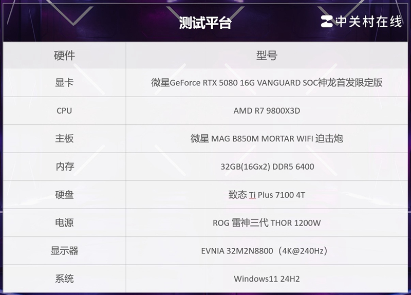 在看数据之前,我们先介绍一下测试平台,为了保障微星 RTX5080 16G神龙首发限定版显卡的性能发挥,我们的平台也再次进行了全面更新。
