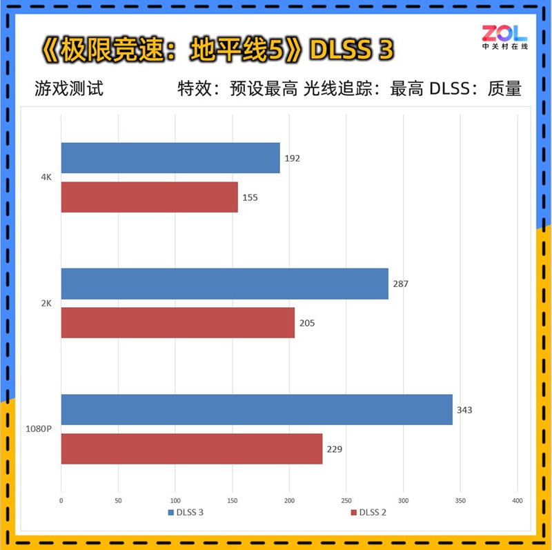 《地平线5》也是显卡测试的常驻游戏,其凭借出色的优化,在原生效果下即可跑出优秀的成绩。微星 RTX5080 16G神龙首发限定版在DLSS 3 4K分辨率下拿下192帧的好成绩,在1080P的画质下更是拿下了343帧,非常丝滑。