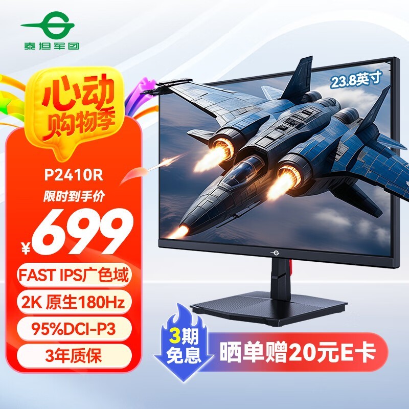 泰坦军团 P2410R显示器原价699元,京东活动售价699元,但在国家补贴和PLUS会员优惠下,到手价只需591.19元,感兴趣的亲们可以入手。
