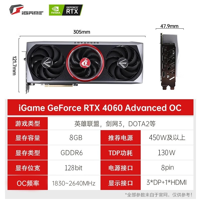 七彩虹 RTX4060 Ultra 战斧DUO大学生设计电竞AI游戏背插 显卡组装电脑台式整机黑悟空AD OC 【4060 8G】 AD OC 8GB