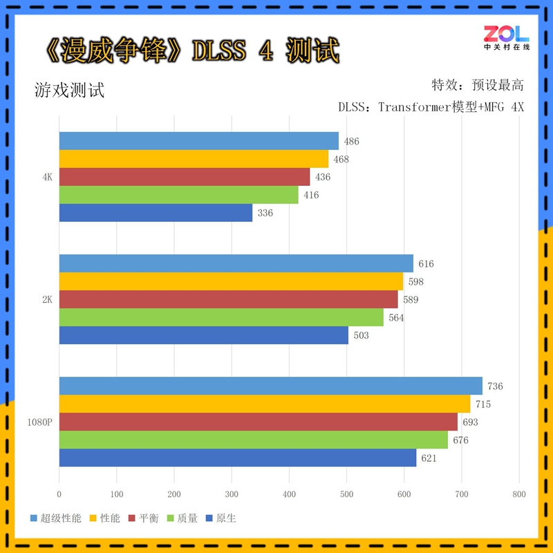 不过在DLSS 4开始使用Transformer模型,并开启多帧生成之后,帧率进一步得到大幅提升。