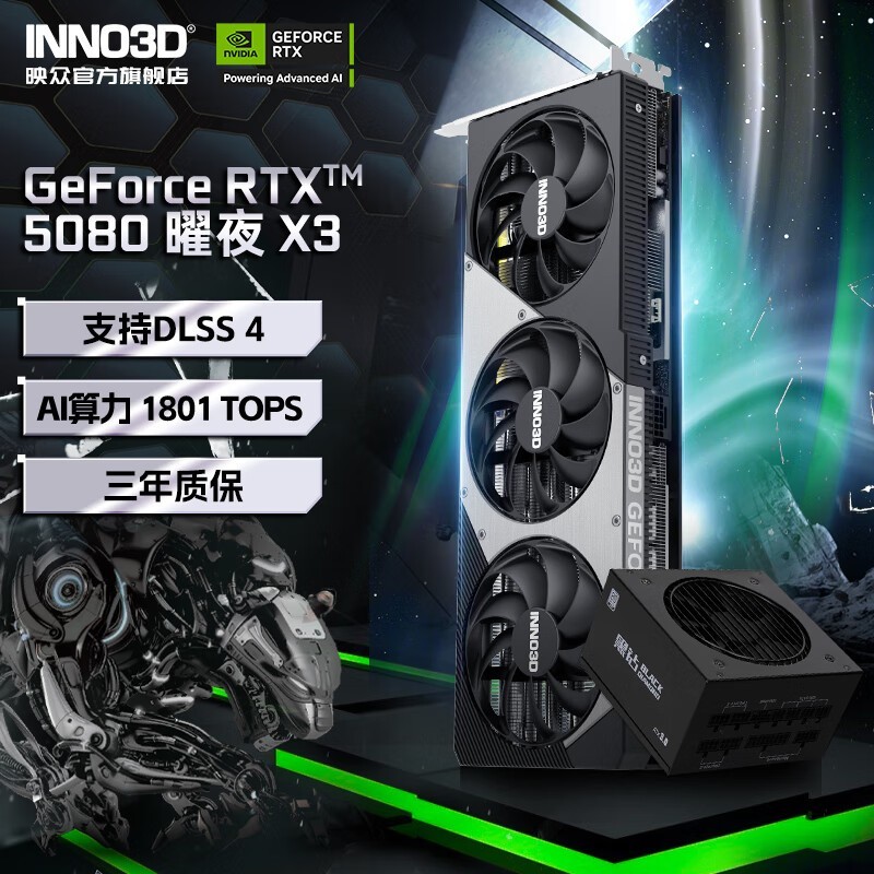映众 RTX5080 X3 曜夜 16G DLSS 4 台式机显卡 电脑设计运算游戏显卡 黑神话悟空 RTX 5080 曜夜 X3+先马黑钻1000W