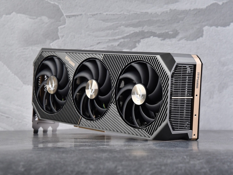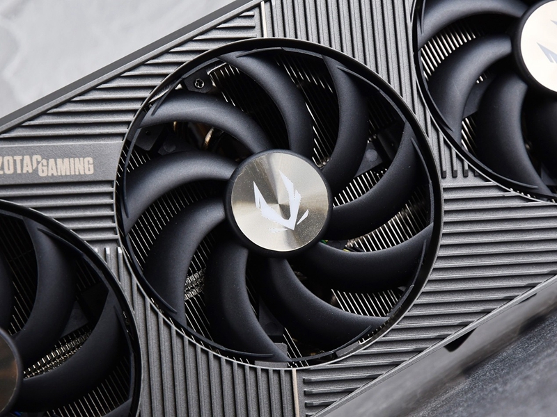 与之搭配的是三只环刃风扇,叶片采用高强度新型复合材质并优化了叶片曲率,增加环形导流风罩,提升风量风压的同时,还有着较高的结构稳定性和和较低的风噪。主动风扇控制2.0技术能独立控制每个风扇,风扇智能启停在显卡负载较低时风扇自动停转,实现节能、降噪并延长使用寿命。