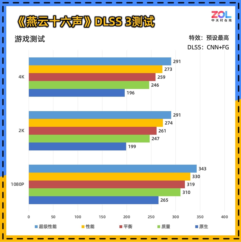 DLSS 3测试也出现了DLSS2中的问题,但4K分辨率索泰GEFORCE RTX 5090 D 32GB SOLID OC大部分DLSS成绩均在200帧以上,超级性能更是达到了291帧。
