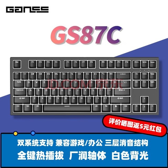 GANSS高斯GS87C/104C客制化机械键盘热插拔轴电竞游戏办公键盘背光电脑键盘 GS87C黑色【白光】单模有线版 全键热插拔 KTT红轴