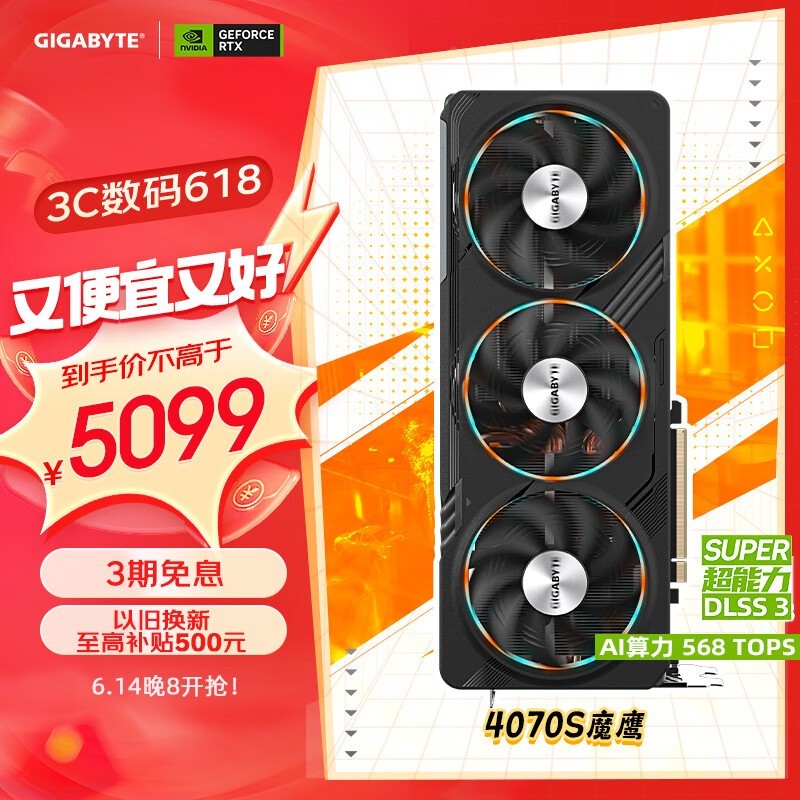 技嘉 4070S显卡 魔鹰 GeForce RTX 4070SUPER Gaming OC 12G DLSS 3电竞AI设计独立显卡【注册四年保】