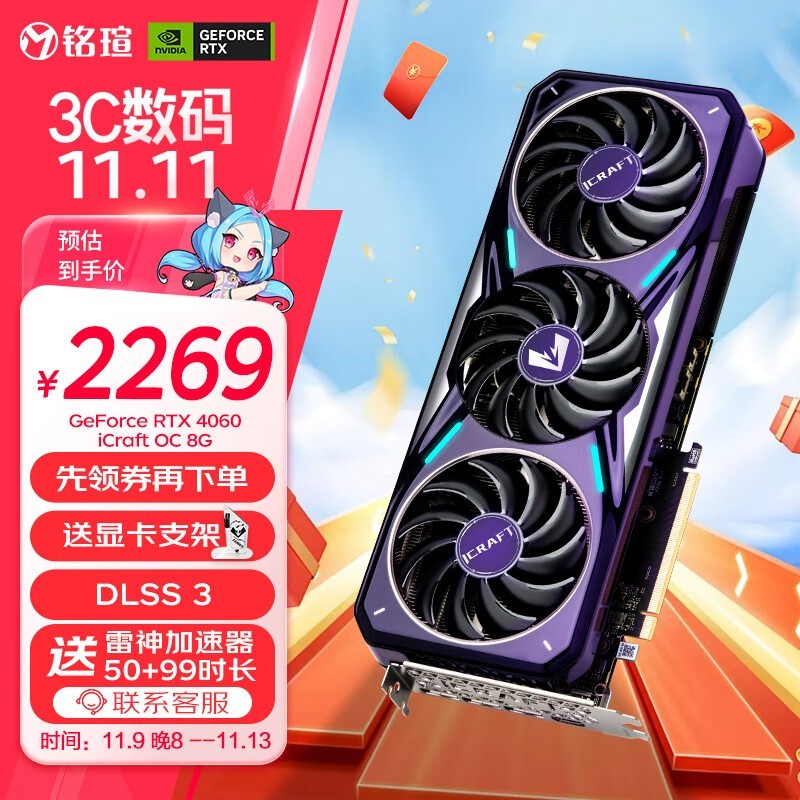 铭瑄 RTX4060 iCraft OC8G DLSS 3 电竞游戏设计AI智能直播电脑显卡