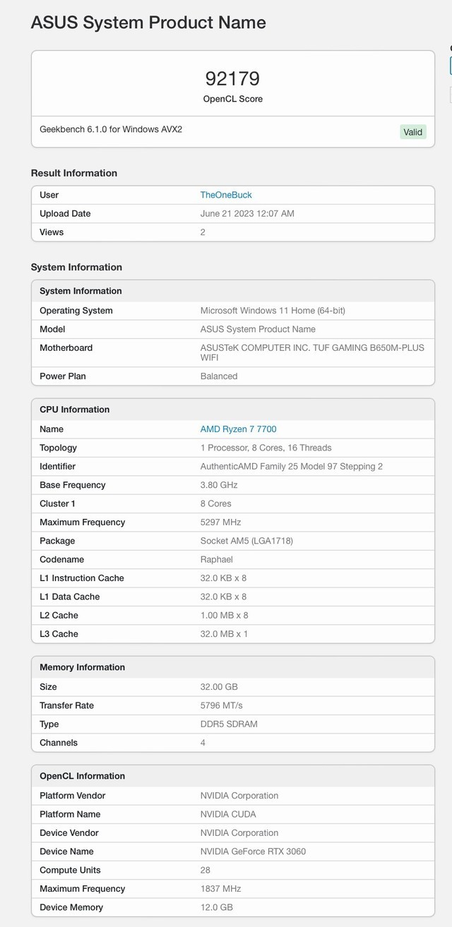 据报道,英伟达即将于6月29日发布RTX 4060显卡,售价从2399元起。近日,该显卡的OpenCL跑分在Geekbench上曝光,搭配i5-13600K处理器,跑分高达105630分。