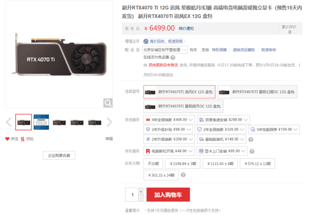 耕升 RTX4070Ti 追风EX 12G 盒装售6499元