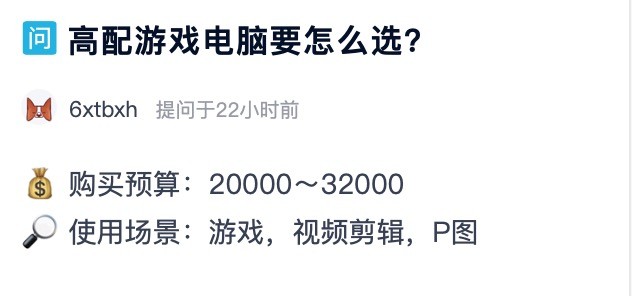 3万元装机,不是三千元,这样的预算装机会犯难?尤其是各种顶级性能硬件都给加上,还不知道这预算够不够,不过这个担心是多余了。按照下面这位网友需求,虽然给了20000--32000元的较大跨度预算,但是还是按照30000元来搞定这套前卫的配置吧。