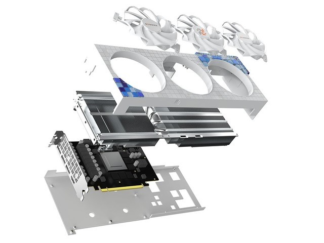 在像素风的加持下,是一个标配了三风扇加六热管的散热器,扇叶经过重新的设计和打磨,可以提供更大的气流量,更多的热管加持也可以让风扇在更低的转速下提供足够的冷却效果。实测满载运行温度不超过70度,这个在RTX3060Ti里面算是非常优秀的水平,基本不用担心夏天的时候显卡会因为高温发热问题而导致花屏死机等故障出现。