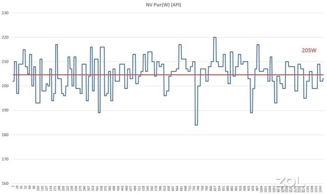 本次我们在拷机测试中最大板载功耗为215.2W左右,TDP达到了100%,影驰 RTX4070 星曜 OC显卡相较于公版功耗大概高出15-20W,游戏动态功耗测试也基本如此。