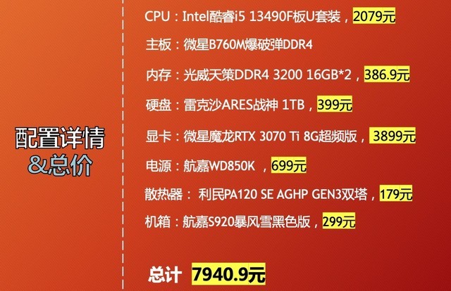 最后核算总价为7940.9元,完全符合8000元以内的预算,而且实现了整体的性能均衡,对于制图行业来说也是一套比较主流的配置。
