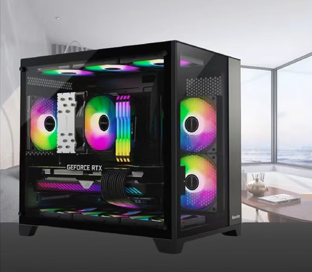 最后就是机箱的选择,可以考虑这台航嘉S920暴风雪的黑色版,可以说质量和颜值均在线,采用正透+侧透设计非常炫酷,支持mATX主板和240mm水冷。另外,这个机箱还采用左右双腔设计,把电源和主板部分独立散热,而且套装还自带3个风扇,进一步提升散热效果。