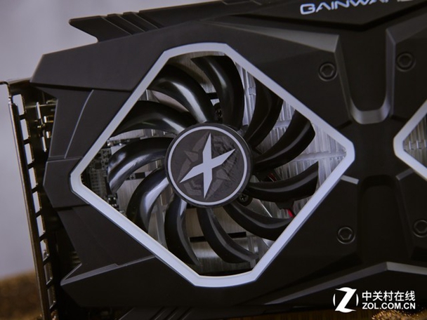 耕升 GTX1650 炫光 OC的正面和其它显卡在散热上有很大的区别,没有使用传统圆形的风扇开窗而是菱形风扇设计,造型比较独树一帜。