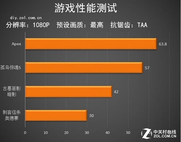 接下来就是游戏测试了,这种显卡《英雄联盟》等游戏应该是无压力的,所以选择了几款3A大作和《Apex》来测试,成绩如下