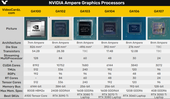 早在2019年5月,GA103的核心就已经出现在大众眼前。这颗核心专门为移动端设计的,依然使用三兴8nm工艺制造、Ampere架构。RTX3080Ti开放58组单元、合计7424个CUDA,全开满血版的数量应该达到7680个。
