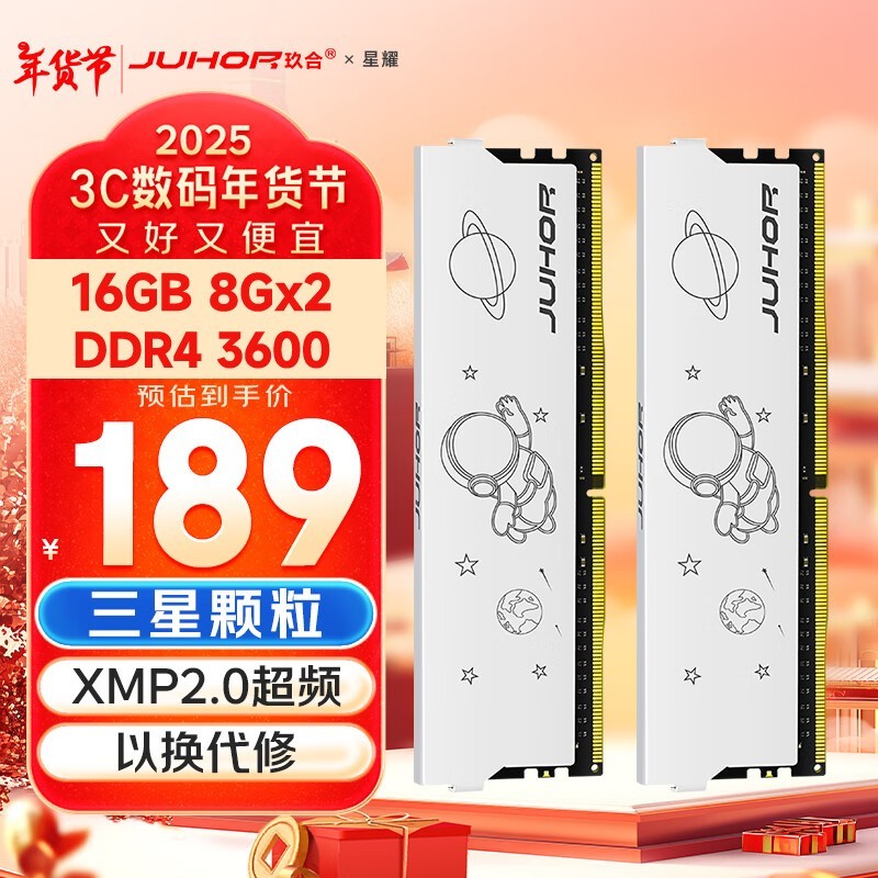 玖合 16GB DDR4 3600 台式机内存条 星耀系列 三星颗粒