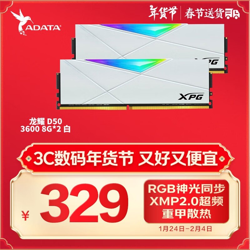 威刚 16G DDR4 3600 釉白电竞RGB内存条,现在京东平台售价329元,原价349元。这是一个难得的优惠机会,让你以更优惠的价格购买到这款高性能的产品。