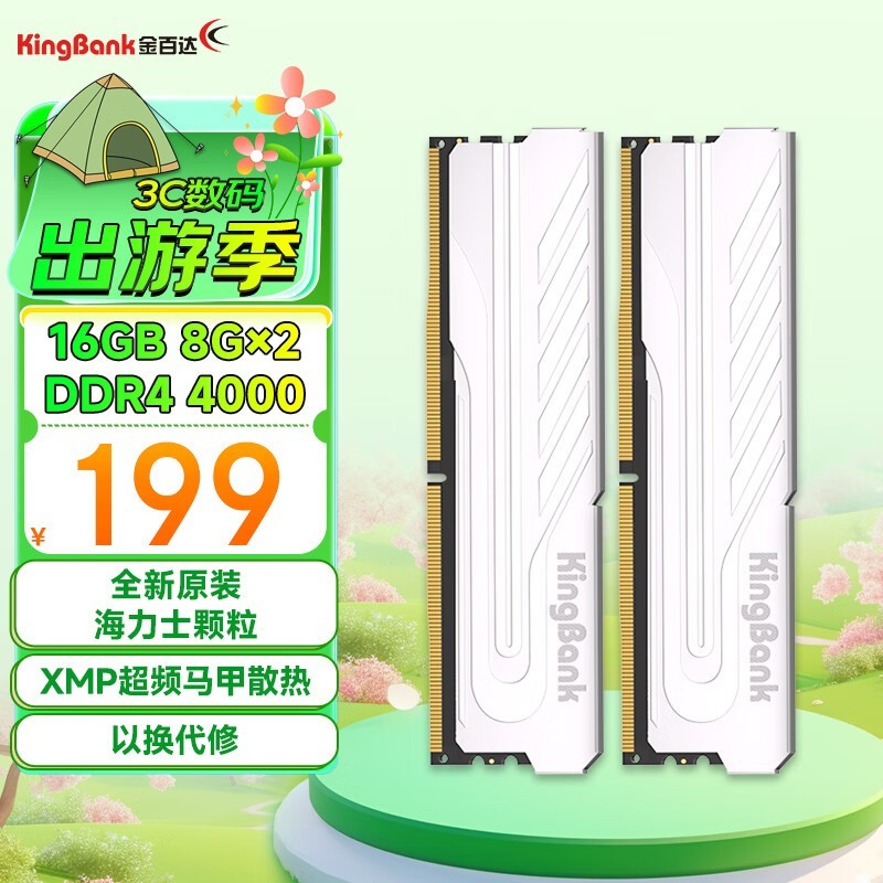 金百达 16GB DDR4 4000 台式机内存条海力士原装颗粒 银爵