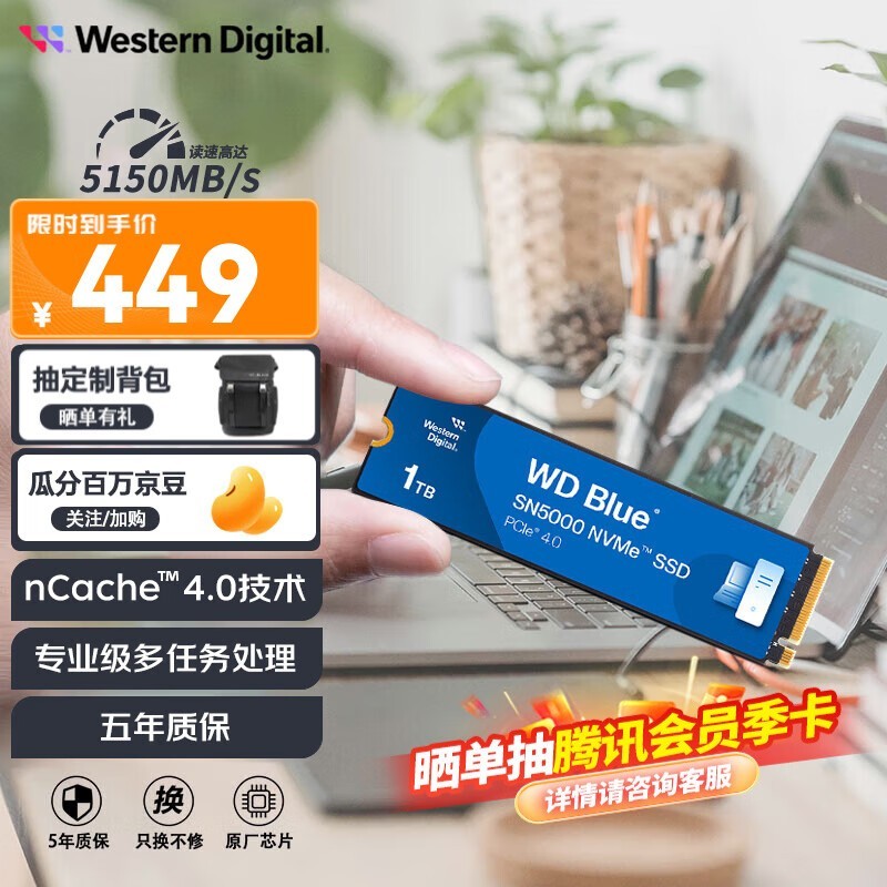 西部数据 SN5000固态硬盘在京东的原价为469.00元,现在活动售价仅为449.00元,以这个价格就能拥有1TB大容量的高性能固态硬盘,非常划算。
