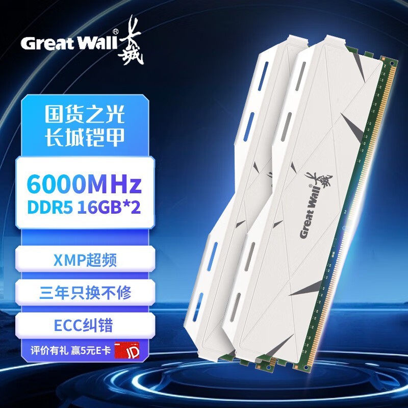 长城 32G DDR5 6000 马甲条 台式机内存条