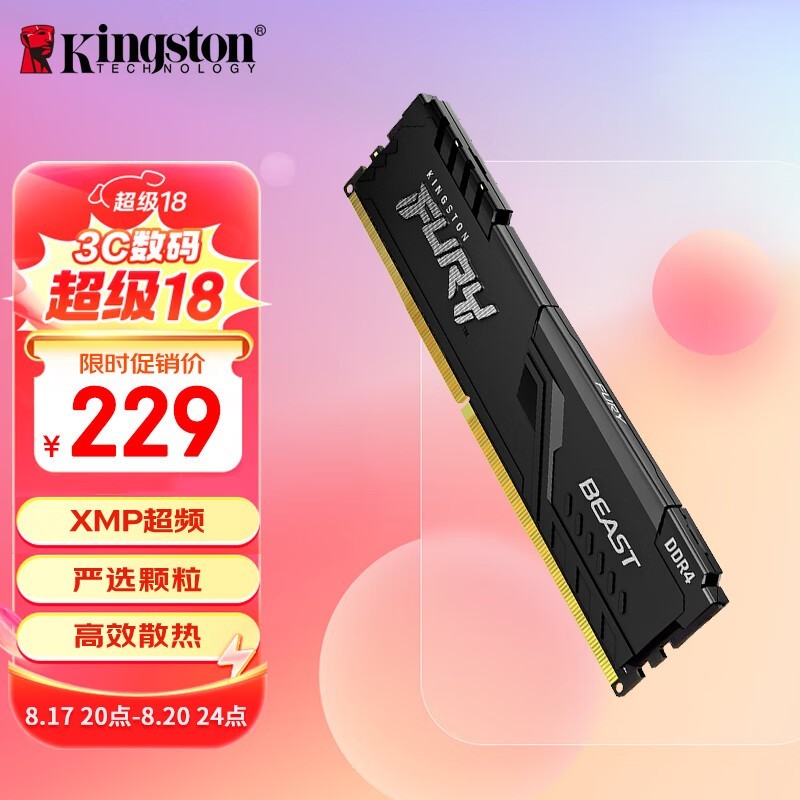 金士顿 16GB DDR4 3200 C16 台式机内存条 Beast野兽系列 骇客神条