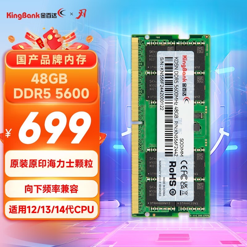金百达 48GB DDR5 5600 笔记本内存条 原装原印海力士颗粒 海力士内存条 适配迷你主机 可组双通道