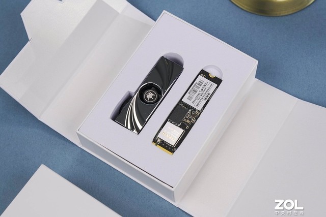内盒依然是磁吸固定,开箱的仪式感十足,打开后即可看到固态硬盘本体和散热马甲。