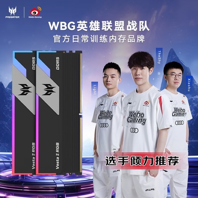 宏 32GB DDR5 6800频率 台式机内存条 Vesta II 炫光星舰RGB灯条(C32) 石耀黑