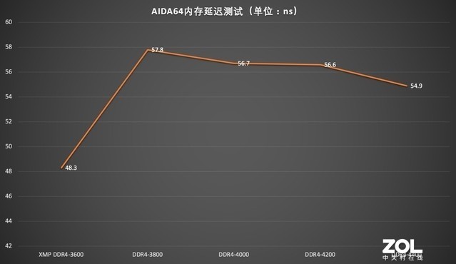 就延迟而言,XMP DDR4-3600模式只有48.3ns,这就是超低时序的魅力所在。在Gear2和提高时序的影响下,超频到DDR4-4400模式上升到54.9ns,中间先增加再减少。因此,为了减少高时序的影响,有必要增加频率,但盲目增加时序带来的延迟也可能削弱甚至抵消性能的增长,因此超频必须足够。