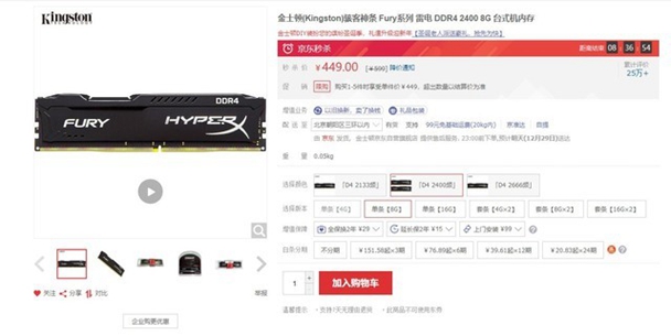 今天笔者给大家推荐的第一款内存是金士顿 骇客神条 Fury系列,DDR4 8G版现在的售价为449元,价格相对趋于合理,喜欢的小伙伴们不要错过。