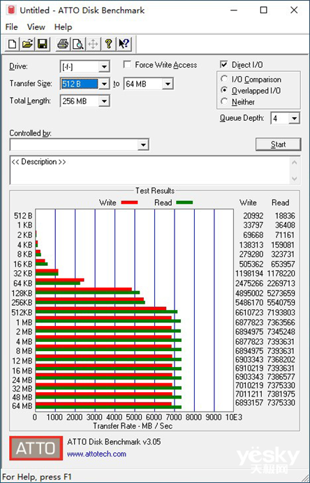 ATTO Disk Benchmark是一款简单易用的磁盘传输速率检测软件,可以用来检测硬盘,U盘、存储卡及其它可移动磁盘的读取及写入速率。在ATTO Disk Benchmark测试中,金士顿 KC3000最高写入速度达到了7011.21MB/S,读取速度达到了7393.63MB/S,速度非常快,如此表现可位列固态硬盘第一梯队。