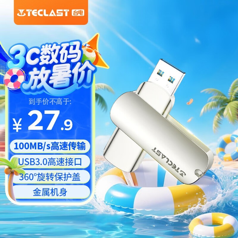 台电 镭神PLUS USB 3.0 32GB U盘现正限时优惠,原价27.90元,参与京东满2减1元活动后仅需26.9元即可到手,性价比出众。台电 镭神PLUSU盘采用全金属机身设计,质感出众,支持360度自由旋转,方便携带不易丢失。搭载USB3.0高速接口,读写速度快,大幅提升文件传输效率,无论是办公文档还是高清影音都能轻松应对。适用于车载、电脑等多种场景,具备良好的防震抗压性能,稳定耐用,是日常存储与数据备份的理想之选。