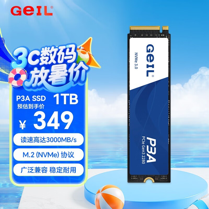 金邦 P3A 1TB SSD固态硬盘 M.2接口PCIe 3.0台式机笔记本硬盘 高速3000MB/S