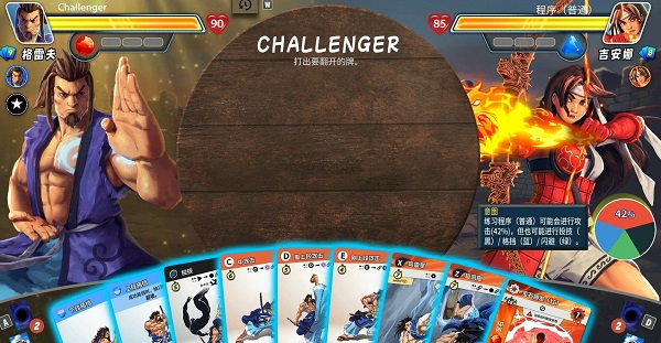卡牌分上中下三段,使用"下段扫腿"克制对手"跳劈"卡时,会触发《铁拳》式的浮空追击特殊动画。