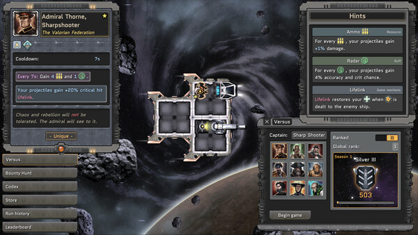 9名舰长各具特色,飞船布局、被动技能及商店物品池均不同,如海盗船长优先刷新火炮装备,外星生物学家解锁寄生类模块。