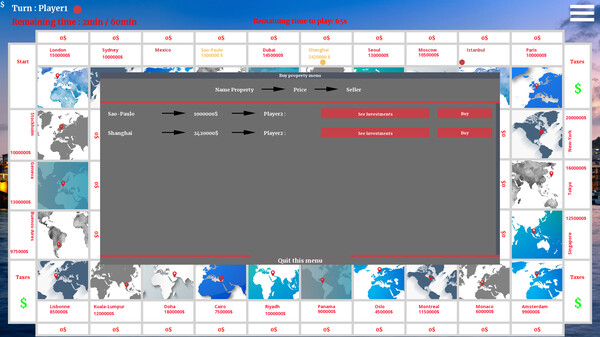 玩家可以从每个城市的股票中选择投资,并随时以市场价格转售股票;还可以购买和转售黄金,根据市场决定获利或亏损。